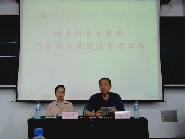 在題為“樹立科學(xué)發(fā)展觀,為學(xué)校發(fā)展建設(shè)努力工作”的講座中,他重點(diǎn)闡述了三個(gè)方面的內(nèi)容:一是關(guān)于貫徹落實(shí)科學(xué)發(fā)展觀的問題。他援引溫家寶總理的有關(guān)論述,結(jié)合國際、國內(nèi)和學(xué)校的發(fā)展背景,深刻闡述了科學(xué)發(fā)展觀“五個(gè)統(tǒng)籌、六個(gè)統(tǒng)一”的重要內(nèi)涵,強(qiáng)調(diào)“發(fā)展是硬道理”,發(fā)展要堅(jiān)持“以人為本”。二是關(guān)于構(gòu)建和諧社會(huì)的問題。他從和諧社會(huì)的科學(xué)內(nèi)涵入手,條分縷析地闡述了黨和國家做出構(gòu)建社會(huì)主義和諧社會(huì)的重大戰(zhàn)略決策的重要意義;他理論聯(lián)系實(shí)際,生動(dòng)地闡述了在構(gòu)建和諧社會(huì)的宏觀背景下構(gòu)建和諧校園的重要性。三是關(guān)于學(xué)校貫徹落實(shí)科學(xué)發(fā)展觀、實(shí)現(xiàn)學(xué)校在新世紀(jì)的科學(xué)發(fā)展的問題。他以科學(xué)發(fā)展觀為指導(dǎo),堅(jiān)持實(shí)事求是、與時(shí)俱進(jìn),從國家實(shí)施科教興國戰(zhàn)略和我省推進(jìn)科教興省戰(zhàn)略,加快東北老工業(yè)基地振興的宏觀背景著眼,從學(xué)校的發(fā)展歷史、現(xiàn)狀和發(fā)展趨勢入手,重點(diǎn)突出地闡述了學(xué)校未來發(fā)展特別是“十一五”期間的戰(zhàn)略構(gòu)想,對學(xué)校發(fā)展的辦學(xué)指導(dǎo)思想、辦學(xué)定位、發(fā)展目標(biāo)、主要措施等方面做了客觀、辯證地分析和說明;對學(xué)校迎接2007年教育部本科教學(xué)水平評估有關(guān)情況做了闡述,并要求各部門、各單位在加強(qiáng)硬件建設(shè)的同時(shí)重點(diǎn)加強(qiáng)軟件建設(shè),強(qiáng)化各方面的管理工作,確?!氨A紶巸?yōu)”目標(biāo)的如期實(shí)現(xiàn)。最后,他強(qiáng)調(diào),學(xué)校正處于非常重要的發(fā)展機(jī)遇期。他號召肩負(fù)著學(xué)校未來發(fā)展任務(wù)的廣大領(lǐng)導(dǎo)干部要團(tuán)結(jié)起來,組織和帶領(lǐng)全體師生員工,為學(xué)校的發(fā)展而努力奮斗! 黨委副書記王鳳琴最后對本次講座進(jìn)行了總結(jié)。她指出,唱江華校長所作的以貫徹落實(shí)科學(xué)發(fā)展觀、構(gòu)建社會(huì)主義和諧社會(huì)、推進(jìn)學(xué)校改革發(fā)展為主要內(nèi)容的報(bào)告,既有理論研究和思考,也有對我們學(xué)校工作和發(fā)展的科學(xué)分析。報(bào)告是對我校發(fā)展的一次情況通報(bào),是對我校辦學(xué)指導(dǎo)思想、發(fā)展定位、學(xué)校發(fā)展所面臨的形勢和任務(wù)的科學(xué)分析,特別是對學(xué)校廣大干部責(zé)任意識一次強(qiáng)化。報(bào)告對我們學(xué)校當(dāng)前和今后一個(gè)時(shí)期的重點(diǎn)工作、努力方向的做了明確,是一次動(dòng)員和部署,對下一步開展工作具有很強(qiáng)的指導(dǎo)意義。她要求各級基層黨委、黨總支、直屬黨支部,要按照校委關(guān)于培訓(xùn)班的學(xué)習(xí)要求,理論聯(lián)系實(shí)際地展開討論,并形成討論總結(jié)材料上報(bào)學(xué)校有關(guān)部門。最后,他要求,全校處級領(lǐng)導(dǎo)干部要按照學(xué)校黨委關(guān)于培訓(xùn)班的要求做,按照唱江華校長動(dòng)員報(bào)告的要求做,以飽滿的精神狀態(tài)、嚴(yán)謹(jǐn)?shù)膶W(xué)風(fēng)、充沛的精力投入到培訓(xùn)學(xué)習(xí)中來,努力提高素質(zhì),很好地完成培訓(xùn)任務(wù)。 這次培訓(xùn)班內(nèi)容豐富,安排了6次集中培訓(xùn),學(xué)校領(lǐng)導(dǎo)將就提高自身素質(zhì),樹立科學(xué)發(fā)展觀,加強(qiáng)中層領(lǐng)導(dǎo)班子民主集中制建設(shè)等問題進(jìn)行專題講座;聘請齊齊哈爾市人民檢察院檢察長紀(jì)少全同志做題為“錘煉人格、鍛造官德”的輔導(dǎo)報(bào)告;還安排了觀看《人民的好公仆—牛玉儒先進(jìn)事跡》錄像片以及警示教育和自學(xué)、討論等內(nèi)容。培訓(xùn)班歷時(shí)半個(gè)月,將于6月22日結(jié)束。