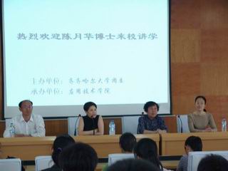 6月13日下午,哈工大陳月華博士應(yīng)邀在我校西區(qū)主樓學(xué)術(shù)報(bào)告廳作了題為“數(shù)字技術(shù)與影像革命”的學(xué)術(shù)講座。此次講座是我校第七屆校園文化藝術(shù)節(jié)系列學(xué)術(shù)講座之一,由校團(tuán)委主辦、應(yīng)用技術(shù)學(xué)院承辦。講座由應(yīng)用技術(shù)學(xué)院副書記、副院長馬金權(quán)主持,哈工大人文學(xué)院主辦的黑龍江復(fù)合人才專修學(xué)院副院長趙淑芬教授和王兆峰副院長及我校團(tuán)委副書記李秀梅出席講座,應(yīng)用技術(shù)學(xué)院等院系部分師生聆聽了講座。 陳月華博士為哈工大傳媒系副主任、教授,主要研究方向?yàn)椤熬W(wǎng)絡(luò)界面設(shè)計(jì)與文化”。在講座中,她著重闡述了數(shù)字化生存、數(shù)字傳媒技術(shù)與影像革命的產(chǎn)生與發(fā)展趨勢(shì)等,簡(jiǎn)要介紹了哈工大傳媒專業(yè)發(fā)展概況并回答了同學(xué)們的現(xiàn)場(chǎng)咨詢。