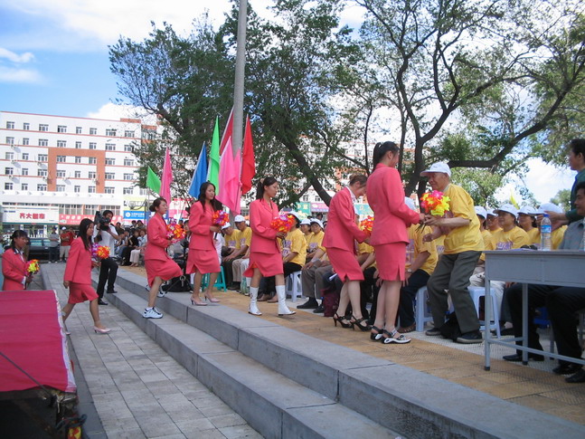 新老交流中薪火相傳。參加此次廣場(chǎng)文藝演出的離退休黨員100余名,其中年齡最高者已達(dá)82歲;部分老黨員曾親身參加過抗日戰(zhàn)爭(zhēng)、解放戰(zhàn)爭(zhēng)和抗美援朝戰(zhàn)爭(zhēng),為國(guó)家的獨(dú)立、人民的解放和世界的和平建立了功勛;在和平建設(shè)時(shí)期,他們又為學(xué)校的創(chuàng)建、改革與發(fā)展做出了貢獻(xiàn)。在文藝演出前。人文學(xué)院的學(xué)生代表為他們敬獻(xiàn)了鮮 花,表達(dá)了當(dāng)代大學(xué)生對(duì)老一輩革命者的崇高敬意;離退休老黨員劉吉平也在演出中寄語青年學(xué)子要“努力學(xué)習(xí),創(chuàng)出佳績(jī),為學(xué)校、為家庭爭(zhēng)光!”,表達(dá)了老一輩對(duì)青年大學(xué)生的殷切希望。