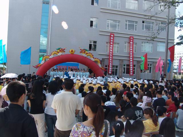 6月10日下午,我校人文樓東側(cè)的校園廣場(chǎng)彩旗招展,樂曲悠揚(yáng),“六十載江橋鴿駐老驥心騏放歌激情歲月,半世紀(jì)濱湖鶴翔芳桃李艷傳薪和諧中國(guó)”的條幅在夏日陽光下鮮明醒目,人文學(xué)院與離退休工作處聯(lián)合 “共建和諧校園 同創(chuàng)美好明天”的大型廣場(chǎng)文藝演出隆重舉行,校領(lǐng)導(dǎo)唱江華、王鳳琴、姜守訓(xùn)、張忠恒、鄭喜群等出席,離退休老干部合唱團(tuán)及校黨委組織部、宣傳部、離退休工作處、校團(tuán)委等部門有關(guān)負(fù)責(zé)人和人文學(xué)院黨政領(lǐng)導(dǎo)、師生等歡聚激情廣場(chǎng),傾情歌唱。