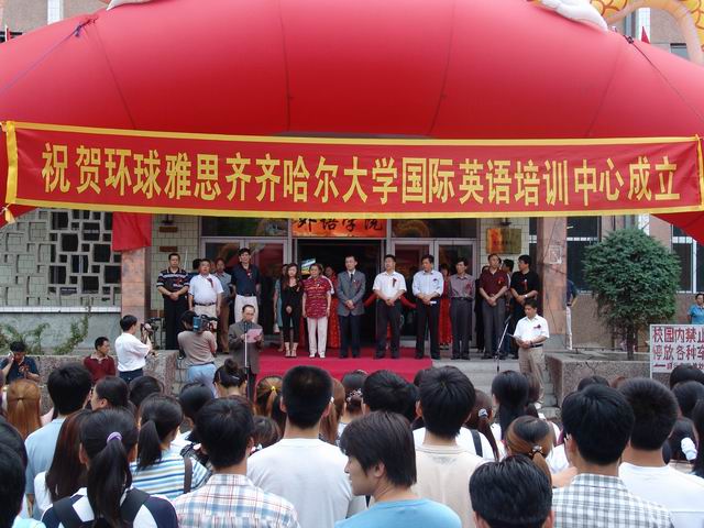 校長(zhǎng)唱江華教授在成立大會(huì)暨揭牌儀式上發(fā)表了熱情洋溢的致詞,他首先代表學(xué)校對(duì)各界人士的蒞臨表示衷心地感謝和熱烈歡迎,對(duì)環(huán)球雅思國(guó)際英語(yǔ)培訓(xùn)中心落戶鶴城表示祝賀!他指出,在改革開(kāi)放不斷深入,國(guó)際交流進(jìn)一步擴(kuò)大的今天,環(huán)球雅思國(guó)際英語(yǔ)培訓(xùn)中心落戶鶴城,將為我校學(xué)生及齊齊哈爾市有識(shí)之士提供了更為廣闊的學(xué)習(xí)英語(yǔ)的途徑。他預(yù)祝,環(huán)球雅思齊齊哈爾大學(xué)國(guó)際英語(yǔ)培訓(xùn)中心將辦得更有特色,更有成效,為齊齊哈爾市與海內(nèi)外的交流合作,促進(jìn)經(jīng)濟(jì)社會(huì)發(fā)展發(fā)揮重要的作用。他表示,我校將努力為環(huán)球雅思國(guó)際英語(yǔ)培訓(xùn)中心提供寬松的環(huán)境和空間。他相信,經(jīng)過(guò)各方的共同努力,雅思齊齊哈爾大學(xué)國(guó)際英語(yǔ)培訓(xùn)中心一定會(huì)辦成高水平的國(guó)際英語(yǔ)培訓(xùn)中心,最后,他再一次向?yàn)楸敬位顒?dòng)的成功舉辦給予大力支持并付出辛勤努力的各有關(guān)單位表示衷心感謝并鄭重宣布:環(huán)球雅思國(guó)際英語(yǔ)培訓(xùn)中心正式成立!
