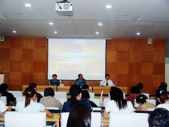 9月15日下午4:00,學(xué)校黨委先進性教育活動領(lǐng)導(dǎo)小組在西區(qū)主樓7樓學(xué)術(shù)報告廳舉辦了黨支部書記培訓(xùn)班,校黨委書記、校保持共產(chǎn)黨員先進性教育活動領(lǐng)導(dǎo)小組組長陳承貴、校黨委副書記、校保持共產(chǎn)黨員先進性教育活動領(lǐng)導(dǎo)小組副組長史鐵成、校黨委組織部部長、校保持共產(chǎn)黨員先進性教育活動領(lǐng)導(dǎo)小組辦公室主任蓋元臣出席培訓(xùn)班,學(xué)校先進性教育辦公室及各工作組成員、各基層黨委、黨總支、直屬黨支部和基層黨支部書記參加了培訓(xùn)班學(xué)習(xí)。