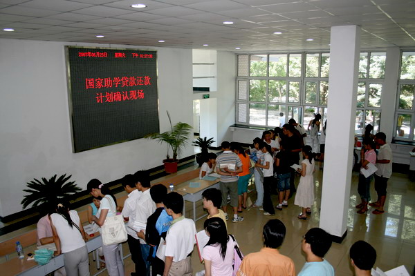 為方便畢業(yè)生辦理還款確認(rèn)手續(xù),我校本年度改變了以往由經(jīng)辦銀行工作人員向?qū)W生進(jìn)行講解并逐一辦理手續(xù)的傳統(tǒng)做法,而是由經(jīng)辦銀行工作人員對學(xué)校各單位、各學(xué)院相關(guān)工作人員進(jìn)行了嚴(yán)格培訓(xùn);在此基礎(chǔ)上,各學(xué)院對學(xué)生開展誠信教育,由受培訓(xùn)的工作人員指導(dǎo)貸款畢業(yè)生填寫還款協(xié)議,最后由經(jīng)辦銀行工作人員對貸款學(xué)生進(jìn)行現(xiàn)場審核與確認(rèn)。