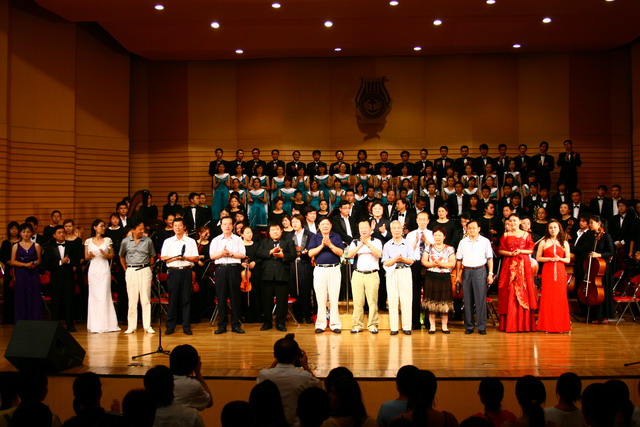 音樂會(huì)結(jié)束后,省、市領(lǐng)導(dǎo)登臺(tái)向演員們表示慰問并合影。