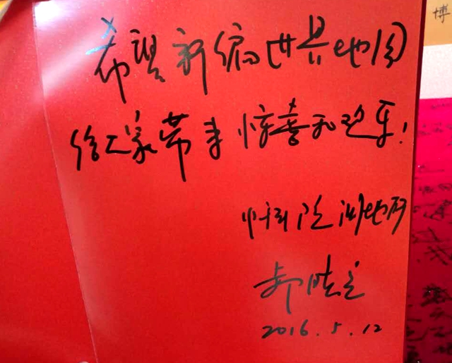 在校講學(xué)期間,郝曉光、王陽一行還參觀了我校校史館和美麗的環(huán)湖校園。郝曉光博士還在校史館留言簿寄語:“希望新編世界地圖給大家?guī)眢@喜和歡樂!”