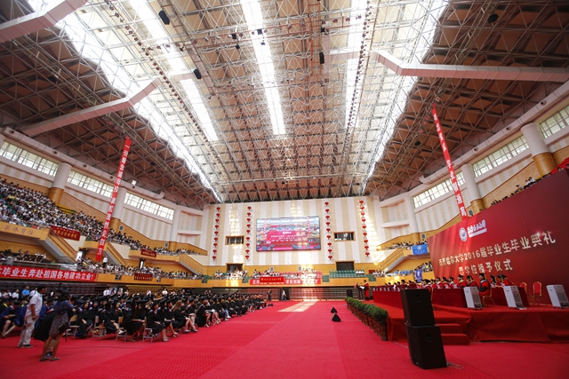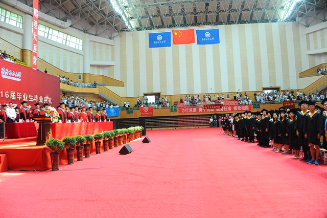齊平至正,大道中行,騰蛟起鳳,飛舉遠(yuǎn)征。從青澀懵懂的少年到睿智成熟的青年,2016屆畢業(yè)生用勤奮、拼搏和執(zhí)著書寫了青春的傳奇、演繹了人生的精彩。畢業(yè)典禮后,他們帶著母校全體師生的深深祝福揚(yáng)帆遠(yuǎn)航,開啟人生新的征程。學(xué)校希望2016屆畢業(yè)生牢記學(xué)校領(lǐng)導(dǎo)、老師的殷切囑托,秉承母?!梆B(yǎng)正毓德、精存自生”的校訓(xùn)精神,見賢思齊,筑夢人生,努力成為有益于祖國、有益于人民、有益于民族、有益于母校的高素質(zhì)人才。母校將與全體校友不忘初心,繼續(xù)前進(jìn),凝神聚力,共謀發(fā)展,奮力建成有特色高水平教學(xué)研究型綜合大學(xué),為實現(xiàn)“兩個一百年”奮斗目標(biāo)和中華民族偉大復(fù)興的“中國夢”貢獻(xiàn)力量。