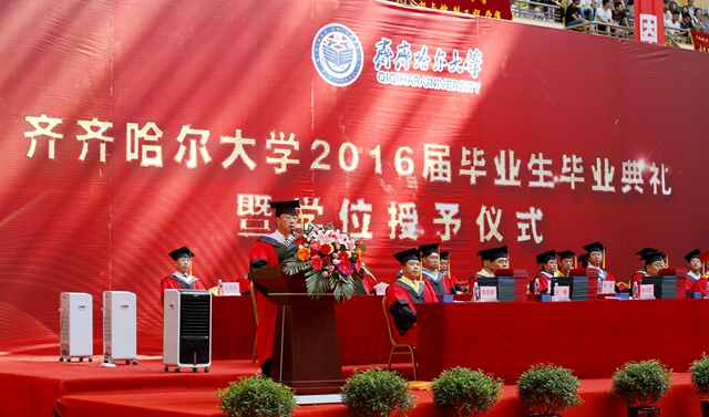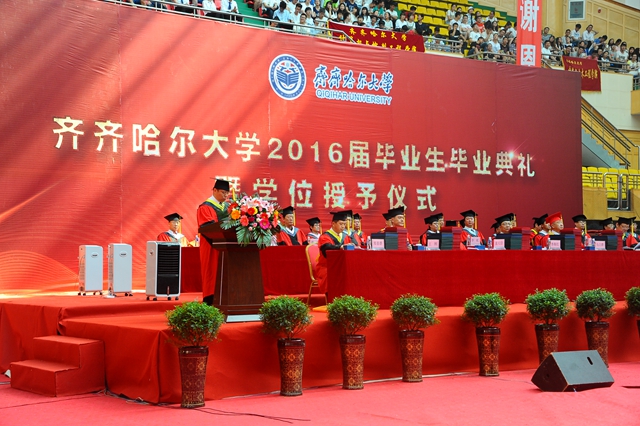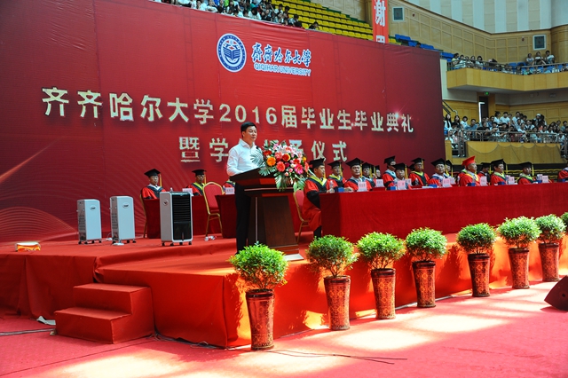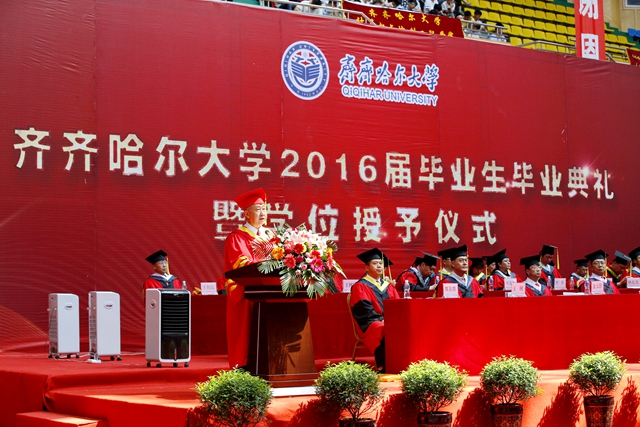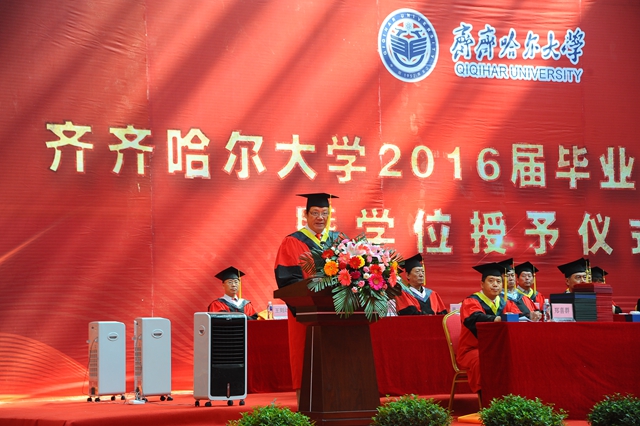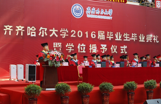 “齊齊哈爾大學(xué)2016屆畢業(yè)生畢業(yè)典禮暨學(xué)位授予儀式”由校黨委常委、常務(wù)副校長鄭喜群主持
