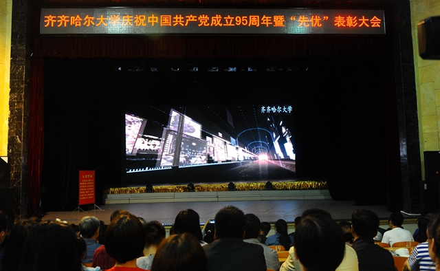 為慶祝中國(guó)共產(chǎn)黨建黨95周年,回顧黨的光輝歷史,總結(jié)我校黨的建設(shè)取得的新成就,表彰先進(jìn)基層黨組織和先進(jìn)個(gè)人,進(jìn)一步動(dòng)員全校各級(jí)黨組織和廣大共產(chǎn)黨員振奮精神,開(kāi)拓創(chuàng)新,扎實(shí)工作,在推動(dòng)我校改革發(fā)展穩(wěn)定中做出新的貢獻(xiàn),6月30日下午,齊齊哈爾大學(xué)慶祝中國(guó)共產(chǎn)黨建黨95周年暨“先優(yōu)”表彰大會(huì)在文化宮隆重召開(kāi)。