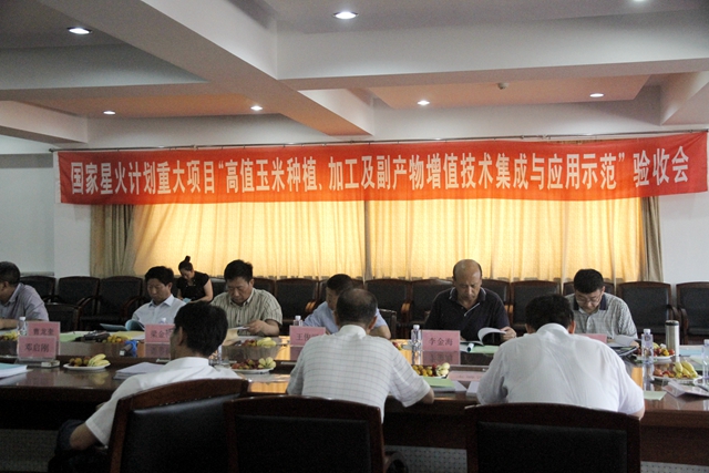 我校黨委常委、常務(wù)副校長鄭喜群教授作為項(xiàng)目主持人匯報(bào)了國家星火計(jì)劃重大項(xiàng)目“高值玉米種植、加工及副產(chǎn)物增值技術(shù)集成與應(yīng)用示范”的實(shí)施內(nèi)容、目標(biāo)任務(wù)和完成情況,并在接受專家驗(yàn)收后代表項(xiàng)目組作表態(tài)發(fā)言。
