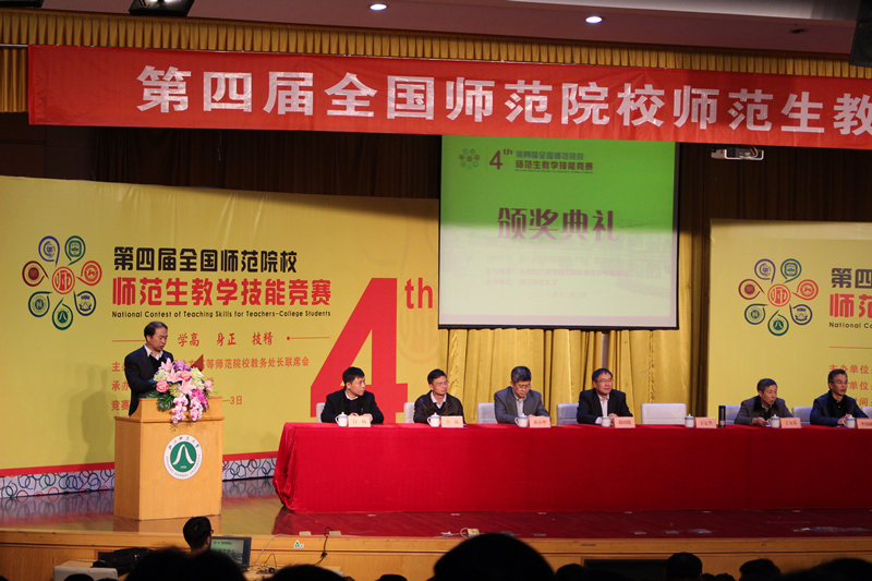 頒獎(jiǎng)典禮上,教育部教師工作司司長(zhǎng)王定華代表教育部向獲獎(jiǎng)同學(xué)表示祝賀,向評(píng)委、老師以及志愿者等表示感謝。王定華指出,“教師是教育的排頭兵、領(lǐng)頭雁,廣大師范生是教師的后備力量”,師范生的培養(yǎng)質(zhì)量關(guān)系到未來(lái)教師隊(duì)伍的建設(shè)水平。王定華希望,相關(guān)高校要提升師范生培養(yǎng)質(zhì)量,完善教師教育體系,推動(dòng)教師教育內(nèi)涵式發(fā)展,培養(yǎng)造就更多高素質(zhì)的優(yōu)秀教師。師范生教學(xué)技能競(jìng)賽為師范生提供了切磋技藝、展現(xiàn)風(fēng)采的舞臺(tái),為廣大師范院校搭建了合作交流、互助互動(dòng)的平臺(tái),通過(guò)比賽見(jiàn)賢思齊、取長(zhǎng)補(bǔ)短,努力提升辦學(xué)質(zhì)量,為推動(dòng)教師教育改革與發(fā)展做出積極貢獻(xiàn)。也為提高全國(guó)師范院校人才培養(yǎng)質(zhì)量,做出了積極貢獻(xiàn)。