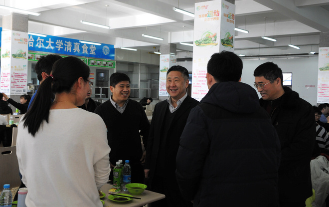 中午,校領(lǐng)導(dǎo)馬立群、蓋元臣、鄭喜群來到東區(qū)食堂,慰問工作在一線的各學(xué)院輔導(dǎo)員老師。馬立群在講話中說,學(xué)生工作人員是學(xué)校開展思想政治工作的重要隊伍,輔導(dǎo)員工作任務(wù)重、責(zé)任大,大家很辛苦;新的一年即將到來,希望你們深入學(xué)習(xí)習(xí)近平總書記的講話精神,不斷努力,在本職工作上取得更突出的成績!