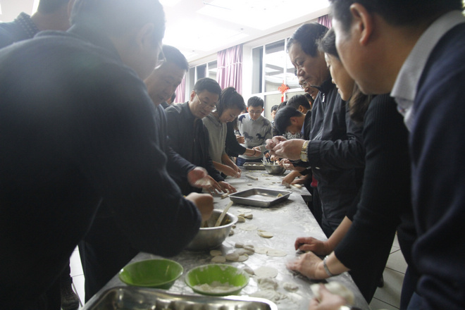 傍晚時分,華燈初上,中區(qū)食堂熱鬧非凡。以“餃香團圓暖冬日 師生情深滿校園”為主題的包餃子活動正在這里舉行。學(xué)校領(lǐng)導(dǎo)、相關(guān)職能部門的領(lǐng)導(dǎo)和各學(xué)院的領(lǐng)導(dǎo)、班主任、輔導(dǎo)員老師,與廣大同學(xué)一起包餃子迎新年。師生們有的揉面,有的搟皮,有的在包,有的在學(xué),歡樂的氣氛感染著現(xiàn)場的每一個人,大家紛紛拿出手機,要留下大學(xué)里這一難忘的時刻。一位2016級的新生說,以前都是在家里包餃子迎新年,今年是第一次在學(xué)校食堂集體包餃子,感覺更有趣,這一定會成為我們大學(xué)校園生活最美好、最溫暖的回憶。