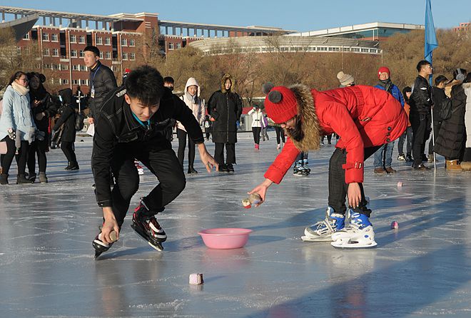 本屆冰上運(yùn)動會單項(xiàng)比賽采用國家體育總局冬運(yùn)中心審定的最新的《速度滑冰競賽規(guī)則》,設(shè)置了單項(xiàng)比賽“男子500米、女子500米速滑”競賽項(xiàng)目,設(shè)置了“纖夫拉爬犁50米”、“定時(shí)快撿小布球20個(gè)”等游戲項(xiàng)目,吸引了眾多同學(xué)的熱情參與,充分體現(xiàn)了冰上運(yùn)動會的群體性。