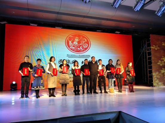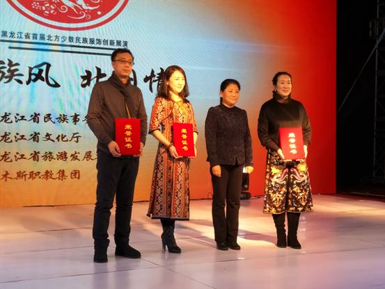 2016年12月29日下午,由黑龍江省民族宗教事務(wù)委員會(huì)、黑龍江省文化廳、黑龍江省旅游發(fā)展委主辦的黑龍江省首屆北方民族服飾創(chuàng)新展演活動(dòng)在哈爾濱華旗飯店501舉行。本次展演的主題為“民族風(fēng) 北國情”,出席本次展演的領(lǐng)導(dǎo)有黑龍江省政協(xié)副主席洪袁舒,黑龍江省政府副秘書長王大為,黑龍江省文化廳副廳長韓慧峰,黑龍江省民委主任劉明,黑龍江省政協(xié)民宗委主任王成國。同時(shí)來自全省各地的少數(shù)民族干部群眾及設(shè)計(jì)研發(fā)團(tuán)隊(duì)參加了展演活動(dòng)。齊齊哈爾大學(xué)美術(shù)與藝術(shù)設(shè)計(jì)學(xué)院服裝與服飾設(shè)計(jì)系全體教師及參賽學(xué)生參加了此次展演。