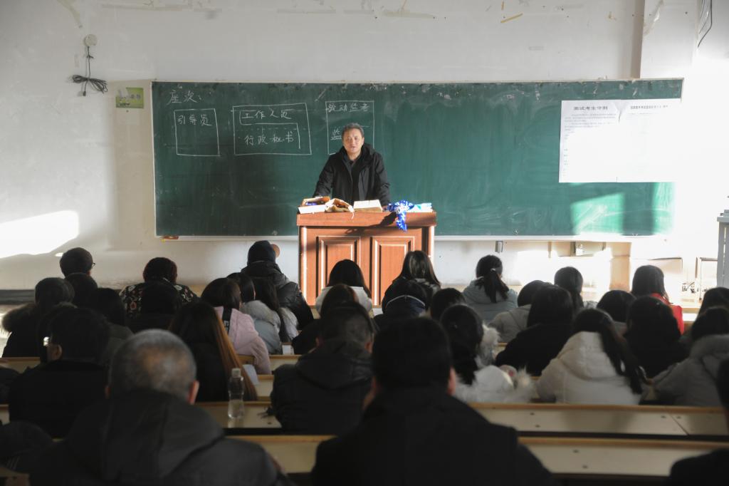 12月28日,在中區(qū)辦公樓504會(huì)議室,副校長李英杰帶領(lǐng)領(lǐng)導(dǎo)小組全體成員召開會(huì)議,對(duì)教師資格面試工作進(jìn)行了統(tǒng)一部署,各有關(guān)部門也給予了高度重視,在網(wǎng)絡(luò)安裝調(diào)試、遴選考官、新聞宣傳、考場(chǎng)布置、監(jiān)考人員和工作人員安排、紀(jì)檢監(jiān)督、安全保衛(wèi)、財(cái)務(wù)及后勤保障等各方面積極工作,保證了考試過程秩序井然,給考生提供了良好的考試環(huán)境,贏得了省教育廳和省招生考試院巡視人員的高度認(rèn)可。