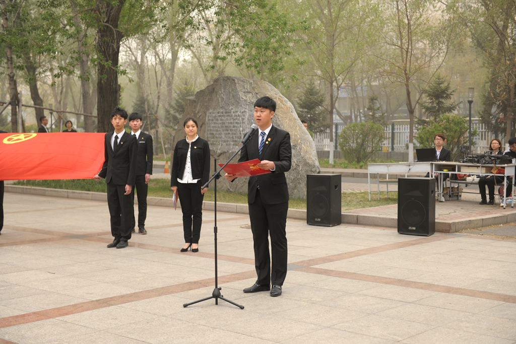 校黨委副書記蓋元臣在升旗儀式上講話。他代表學(xué)校黨委,向全校青年師生致以節(jié)日的祝賀和親切的問候,向在我校共青團(tuán)戰(zhàn)線上辛勤付出的廣大團(tuán)干部表示親切的慰問和崇高的敬意,并向全校團(tuán)員青年提出了三點期望:一要堅定理想信念,樹立高遠(yuǎn)之志。青年人只要把個人的奮斗與祖國的命運聯(lián)系起來,把個人的成功與民族的復(fù)興聯(lián)系起來,才能獲得前進(jìn)中永恒的動力,才能發(fā)揮個人最大的作用,才能在新時代里成就一番事業(yè);二要堅持發(fā)奮學(xué)習(xí),夯實成才之基。青年既要向書本學(xué)習(xí),又要向?qū)嵺`學(xué)習(xí),要善于創(chuàng)新,善于實踐,在實踐中求得真知,增長才干。要有成才的緊迫感,要為不斷迎接新挑戰(zhàn)打下堅實的基礎(chǔ);三要加強(qiáng)品格修養(yǎng),力行高尚之德。希望廣大團(tuán)員青年把正確的道德認(rèn)知、自覺的道德養(yǎng)成、積極的道德實踐緊密的結(jié)合起來,自覺地樹立和踐行社會主義核心價值觀,自覺弘揚以愛國主義為核心的民族精神和以改革創(chuàng)新為核心的時代精神,在偉大而富有希望的時代,創(chuàng)造出更加無愧于時代的光輝業(yè)績。最后,他號召全校青年繼承和發(fā)揚共青團(tuán)的優(yōu)良傳統(tǒng),聽黨的話、跟黨走,用青年人的智慧、勇氣和力量在我校高水平大學(xué)建設(shè)的征途上、在創(chuàng)新創(chuàng)業(yè)的時代大潮中、在實現(xiàn)中華民族偉大復(fù)興中國夢的大路上奮勇前進(jìn)。