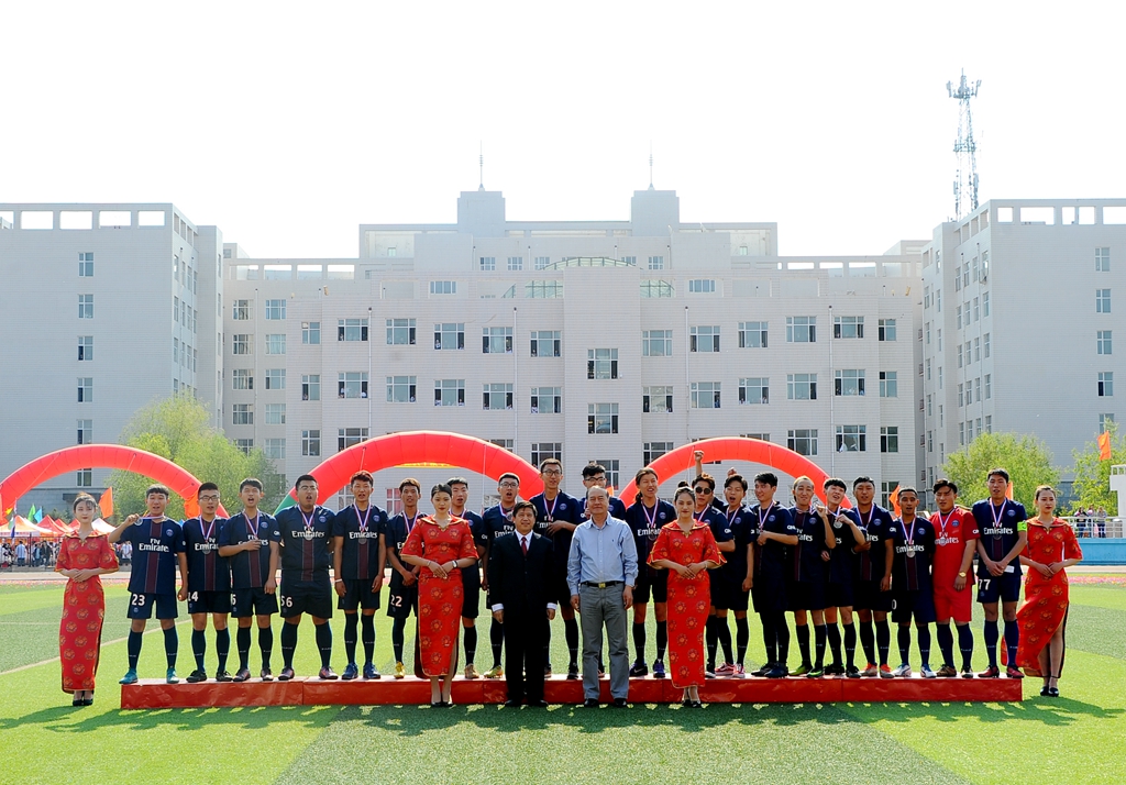 比賽正式開始前,與會(huì)校領(lǐng)導(dǎo)作為頒獎(jiǎng)嘉賓,分別為此前舉行的我校首屆校園足球聯(lián)賽前三名學(xué)院頒獎(jiǎng)。