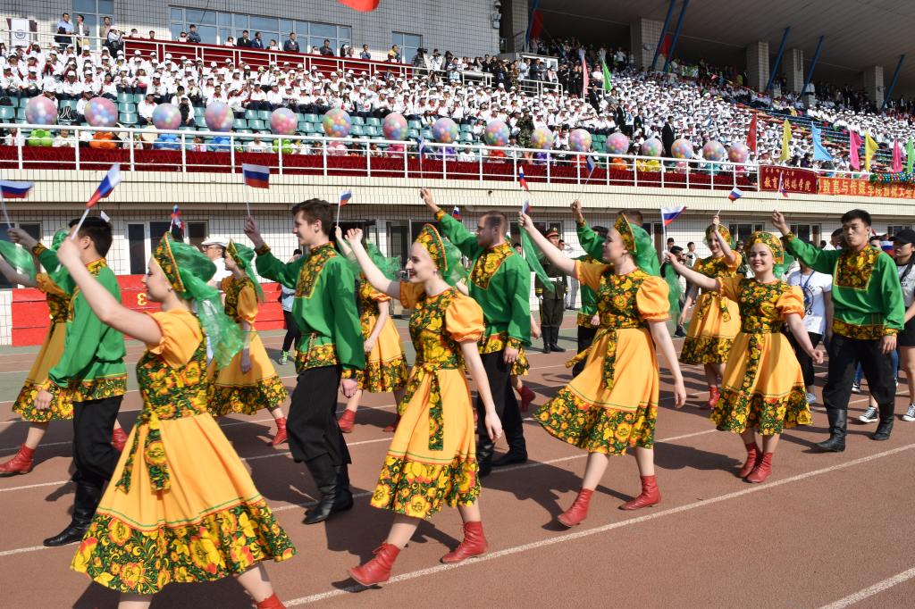 來自全校各單位、各學(xué)院師生代表隊(duì)邁著整齊的步伐,精神飽滿地依次在主席臺(tái)前接受大會(huì)檢閱。其中,來自俄羅斯、韓國、越南、巴基斯坦等國留學(xué)生參加了檢閱,集中展示了我校留學(xué)生的新面貌;研究生部師生意氣風(fēng)發(fā)地接受了大會(huì)的檢閱,充分展示了我校研究生教育蓬勃發(fā)展的新風(fēng)貌。