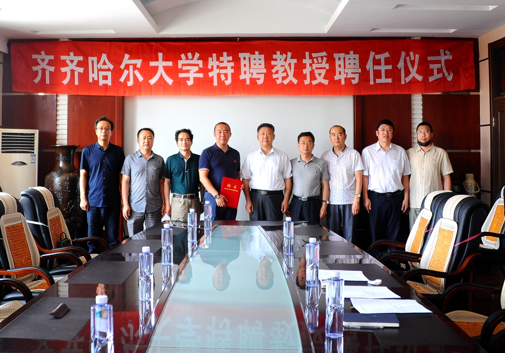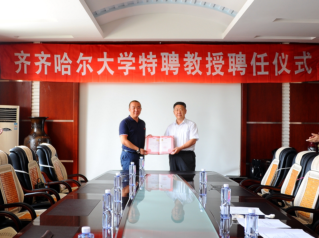 儀式上,校長馬立群代表學校向牟克頒發(fā)了齊齊哈爾大學特聘教授聘書。