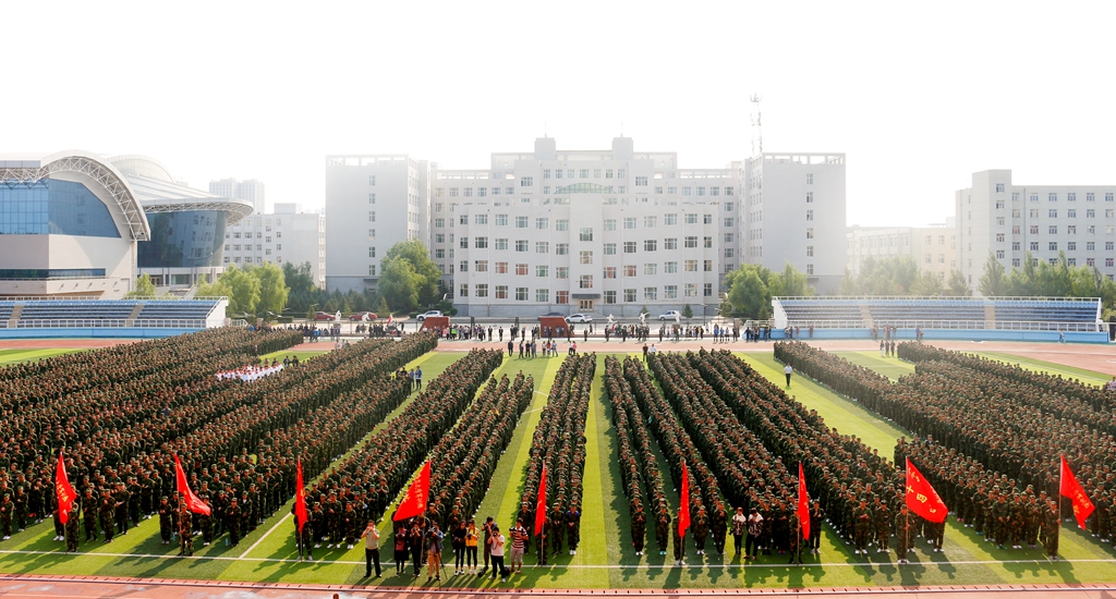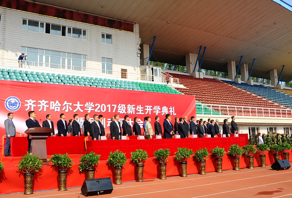 2017級來自全國31個省、市、自治區(qū)的6020名本科生、382名“專升本”同學、研究生新生代表以及各學院輔導員老師、武警齊齊哈爾支隊的教官參加了大會。
