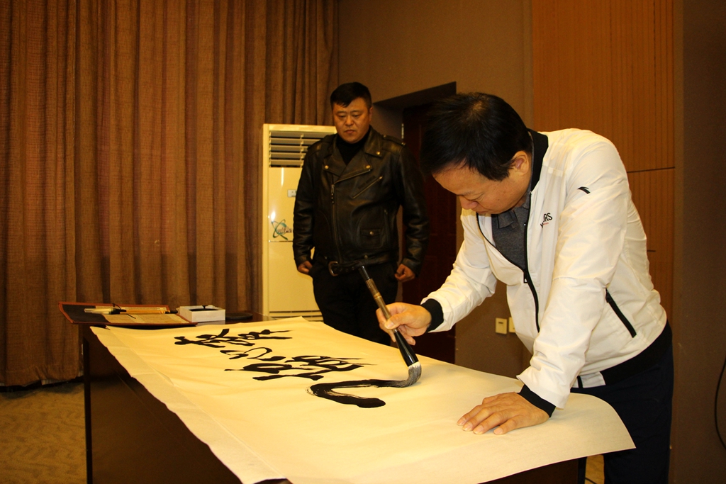錢光鑑還現(xiàn)場(chǎng)為我校體育學(xué)院題詞“齊心協(xié)力”贈(zèng)送我校。