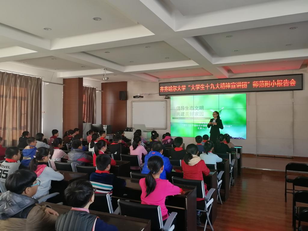 (2017年12月13日齊齊哈爾新聞對(duì)我校“大學(xué)生十九大精神宣講團(tuán)”深入中小學(xué)開展黨的十九大精神宣講活動(dòng)進(jìn)行了采訪報(bào)道。)