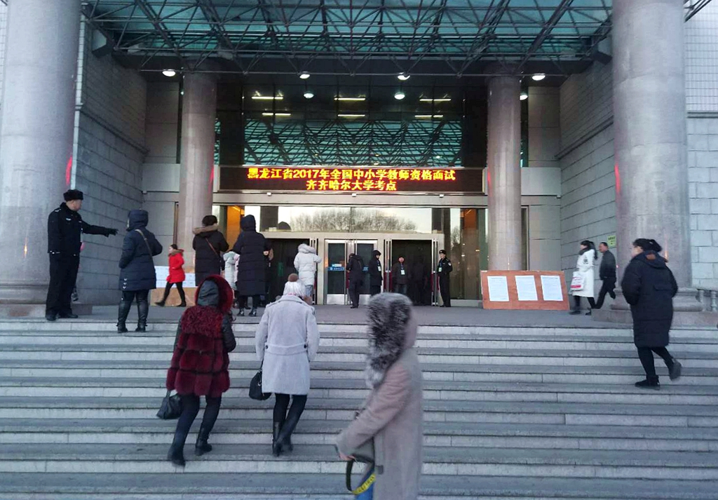 黑龍江省2017年全國中小學教師資格面試(齊齊哈爾大學考點)于2018年1月6日至7日在我校西區(qū)主樓進行。來自齊齊哈爾市、黑河市和大興安嶺地區(qū)的2472名考生參加了面試,本次面試副主考、我校副校長李英杰到考場檢查指導工作。