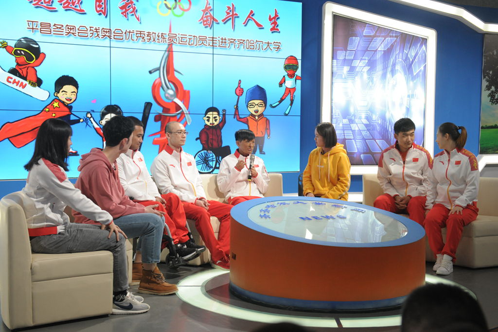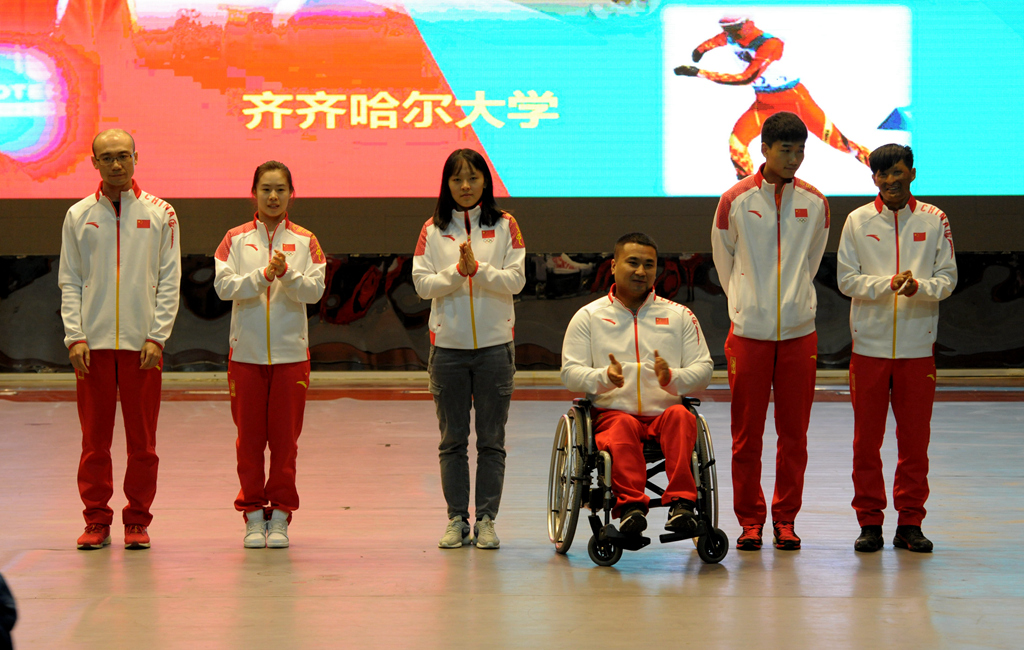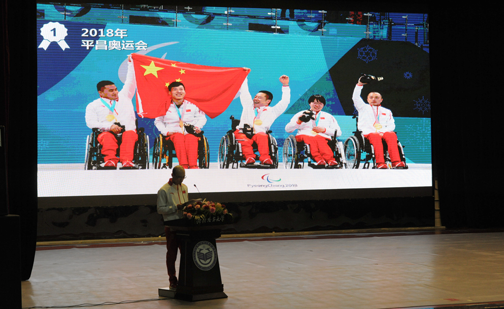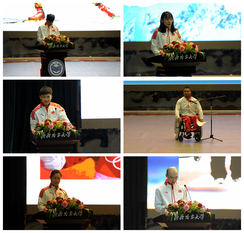 報告會上,平昌冬殘奧會冬季兩項男子站姿7.5公里短距離賽第八名吳君寶、單板滑雪隊運動員蔡雪桐、男子500米銅牌高亭宇、輪椅冰壺冠軍王海濤、自由式滑雪空中技巧隊運動員孔凡鈺、男子輪椅冰壺隊教練員李建銳等6名優(yōu)秀教練員、運動員分享了自己的成長故事、參賽感想和心路歷程,講述了他們在生活和運動生涯中的各種經(jīng)歷、磨難以及他們經(jīng)過不屈不撓、頑強拼搏最終圓夢的感人事跡。臺下師生被他們在為國爭光過程中的艱辛付出和感人事跡所感動,被他們不畏艱辛、超越自我、勇攀高峰的精神深深鼓舞,會場上不時響起熱烈的掌聲。