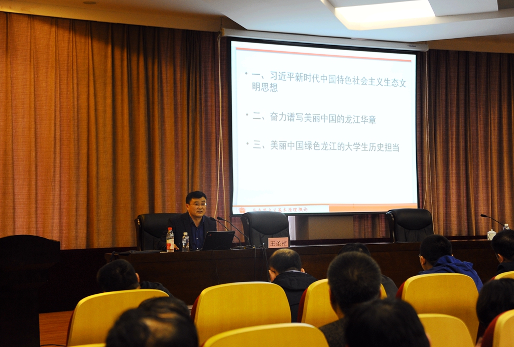 開班式結(jié)束后,集中輪訓(xùn)正式開始。馬克思主義學(xué)院副院長(zhǎng)(主持學(xué)院行政工作)王圣禎作了題為《習(xí)近平新時(shí)代中國(guó)特色社會(huì)主義生態(tài)文明思想與龍江綠色發(fā)展》的專題報(bào)告。在報(bào)告中,他圍繞習(xí)近平新時(shí)代中國(guó)特色社會(huì)主義生態(tài)文明思想、奮力譜寫美麗中國(guó)的龍江篇章、美麗中國(guó)綠色龍江的大學(xué)生歷史擔(dān)當(dāng)?shù)热齻€(gè)方面做了深入細(xì)致的解讀。