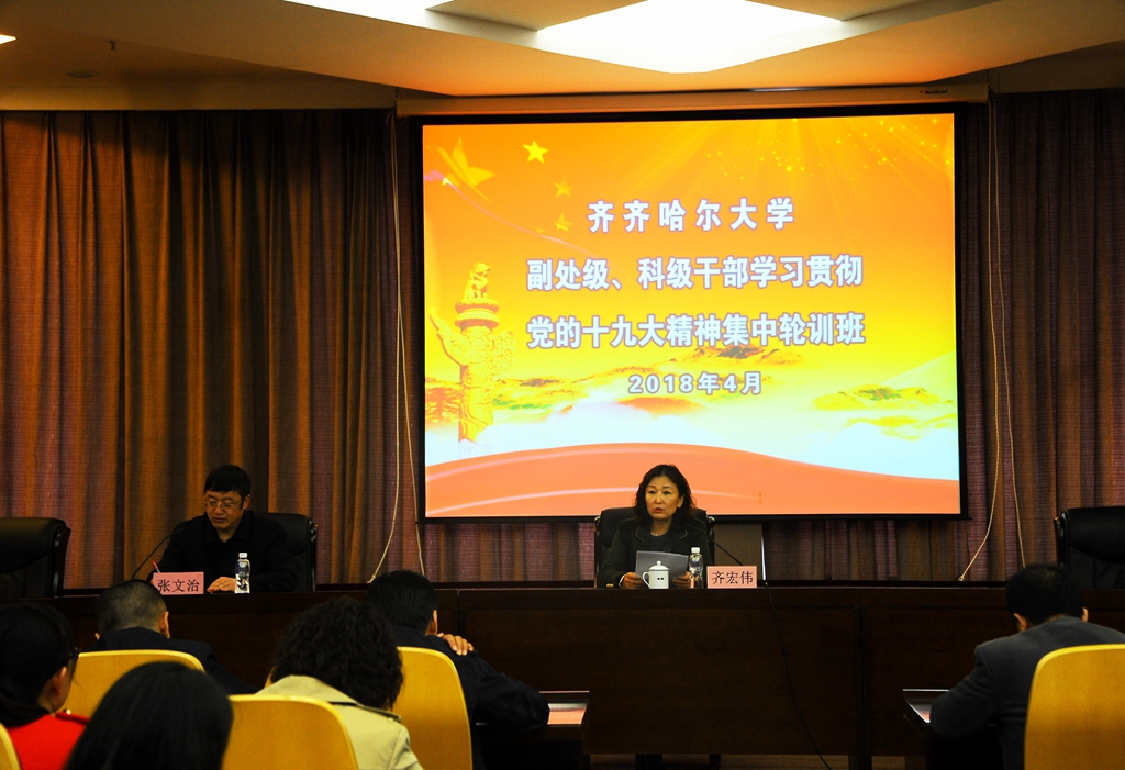 按照《中共黑龍江省委組織部關(guān)于做好縣處級(jí)以上領(lǐng)導(dǎo)干部學(xué)習(xí)貫徹黨的十九大精神集中輪訓(xùn)工作的通知》(黑組發(fā)〔2017〕9號(hào))和《關(guān)于開展高校處級(jí)干部學(xué)習(xí)貫徹黨的十九大精神集中輪訓(xùn)工作的通知》(黑高工委函〔2017〕29號(hào))要求,經(jīng)學(xué)校黨委研究決定,4月23日下午,全校副處級(jí)、科級(jí)干部學(xué)習(xí)貫徹黨的十九大精神集中輪訓(xùn)班在德潤(rùn)大廈四樓會(huì)議室舉辦。校黨委副書記齊宏偉出席開班式并講話,開班式由黨委組織部臨時(shí)負(fù)責(zé)人張文治主持。