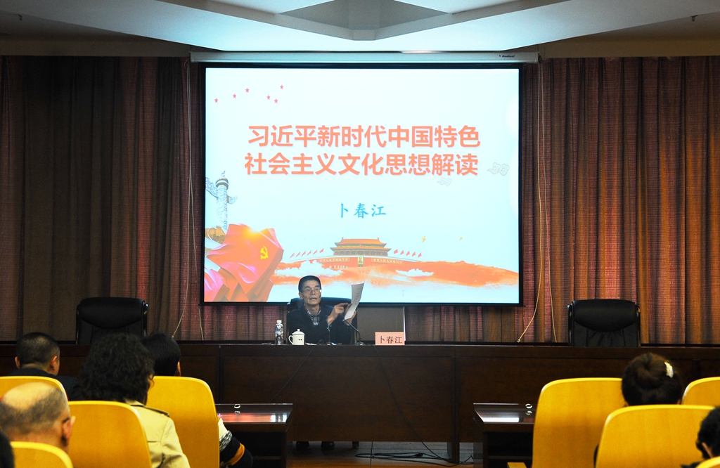 24日下午,哲學(xué)與法學(xué)學(xué)院黨委書記卜春江以《習(xí)近平新時(shí)代中國(guó)特色社會(huì)主義文化思想解讀》為題,為輪訓(xùn)班全體學(xué)員帶來(lái)了一場(chǎng)專題講座,詳盡闡述了習(xí)近平新時(shí)代中國(guó)特色社會(huì)主義文化思想的歷史定位和重大意義、習(xí)近平新時(shí)代中國(guó)特色社會(huì)主義文化思想的基本內(nèi)容、堅(jiān)持以習(xí)近平新時(shí)代中國(guó)特色社會(huì)主義文化思想為指導(dǎo),建設(shè)社會(huì)主義文化強(qiáng)國(guó)等三個(gè)方面的內(nèi)容。