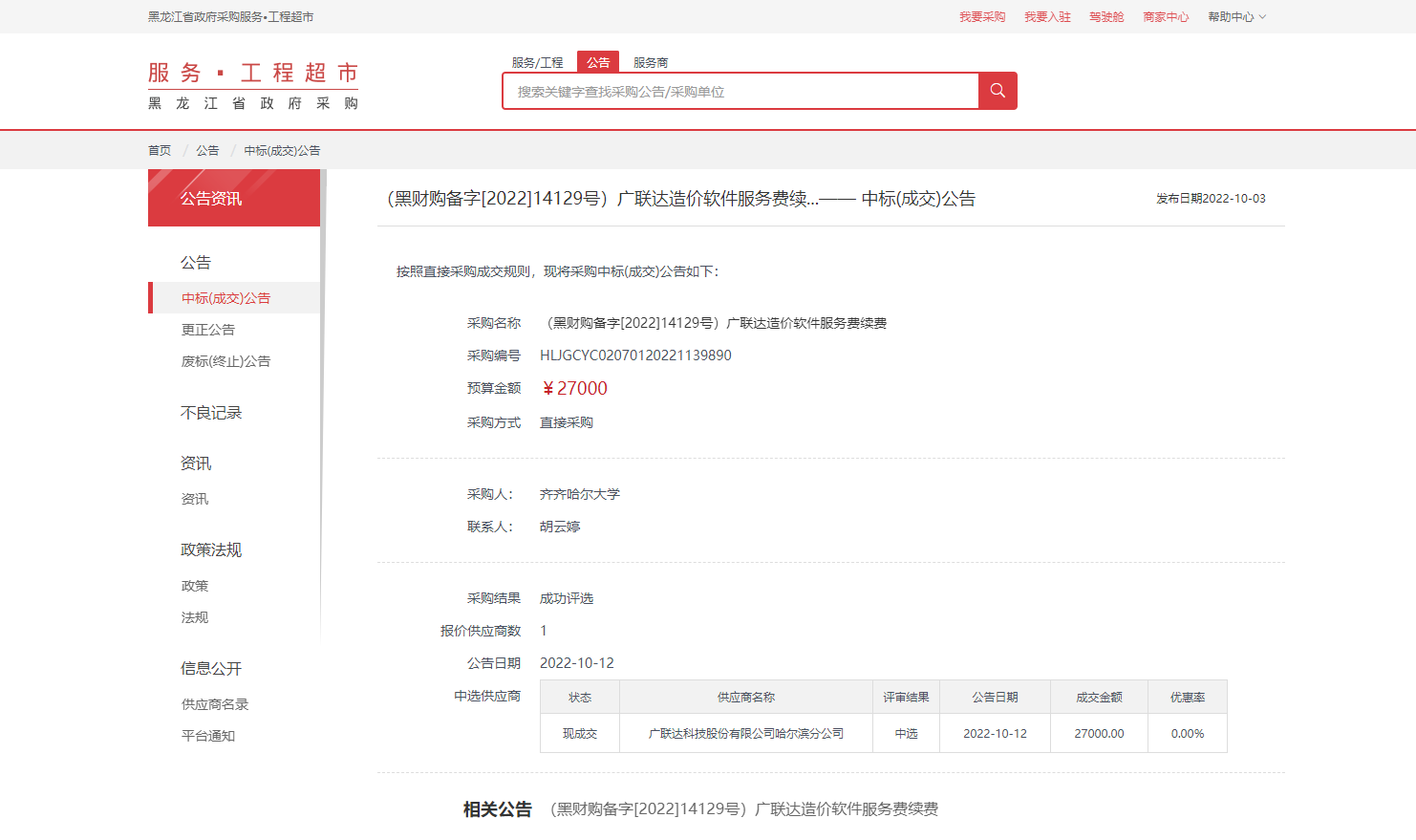 采購名稱(黑財購備字[2022]14129號)廣聯(lián)達(dá)造價軟件服務(wù)費(fèi)續(xù)費(fèi)
