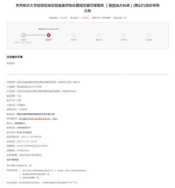 下一條:齊齊哈爾大學實驗室安全管理規(guī)范編寫等服務(省級地方標準)(第2次)詢價采購公告(轉自黑龍江省政府采購網(wǎng))