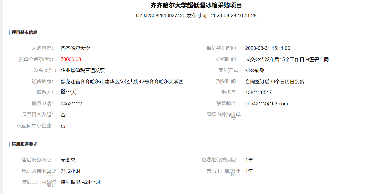下一條:齊齊哈爾大學(xué)化學(xué)試劑等采購(gòu)項(xiàng)目詢價(jià)公告(轉(zhuǎn)自黑龍江省政府采購(gòu)網(wǎng))