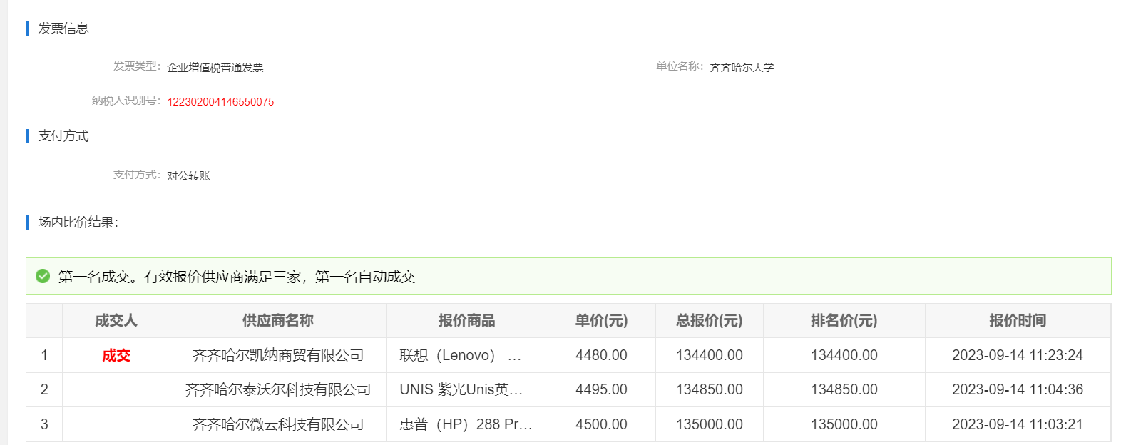 下一條:齊齊哈爾大學(xué)臺(tái)式計(jì)算機(jī)場(chǎng)內(nèi)外詢(xún)價(jià)(第二次發(fā)布)(轉(zhuǎn)自黑龍江省政府采購(gòu)網(wǎng))