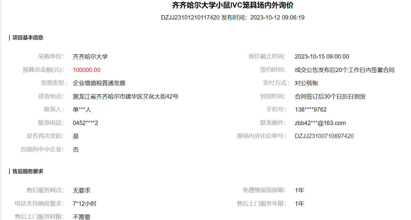 下一條:齊齊哈爾大學小鼠IVC籠具場內(nèi)外詢價(廢標)(轉(zhuǎn)自黑龍江省政府采購網(wǎng))