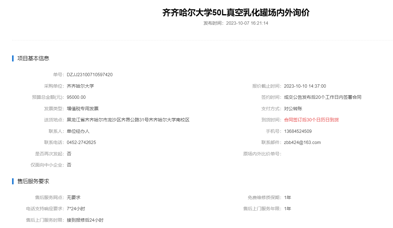 上一條:齊齊哈爾大學(xué)不銹鋼分子蒸餾儀場內(nèi)外詢價(廢標)(轉(zhuǎn)自黑龍江省政府采購網(wǎng))