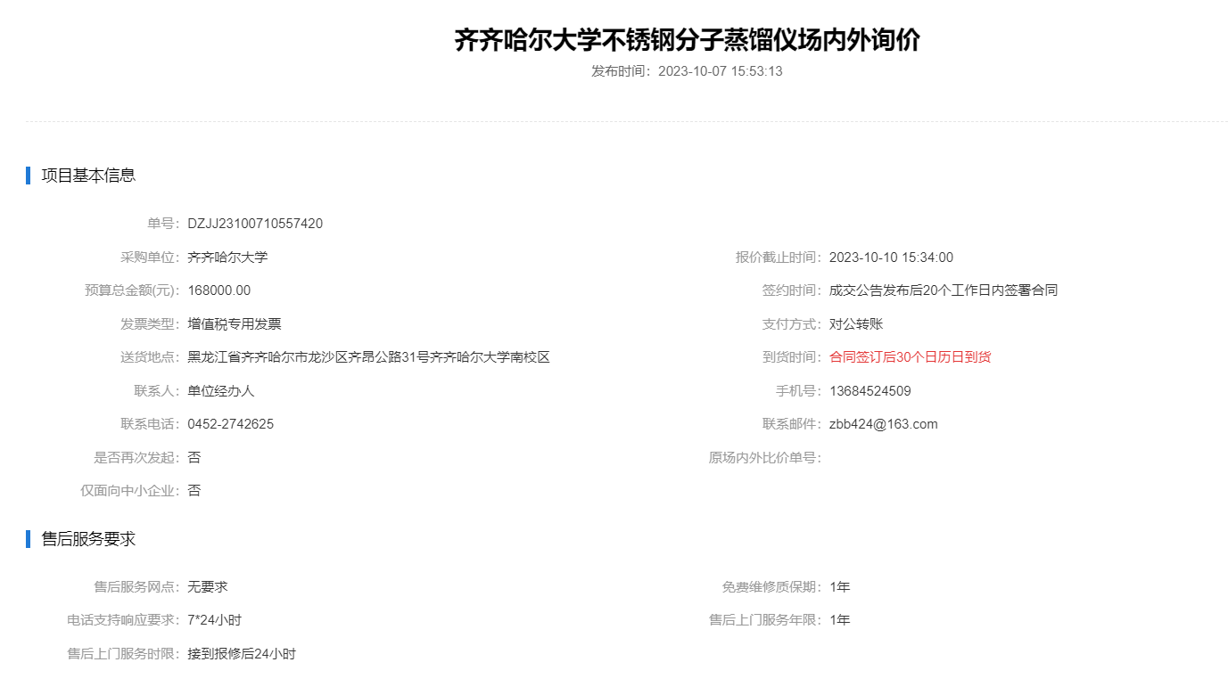 上一條:齊齊哈爾大學(xué)不銹鋼分子蒸餾儀場(chǎng)內(nèi)外比價(jià)(轉(zhuǎn)自黑龍江省政府采購(gòu)網(wǎng))