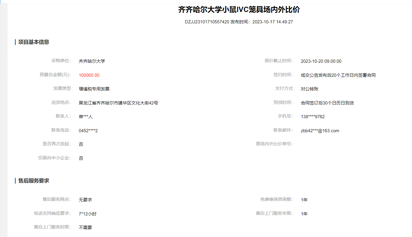 下一條:齊齊哈爾大學(xué)小鼠IVC籠具場內(nèi)外詢價(二次廢標(biāo))(轉(zhuǎn)自黑龍江省政府采購網(wǎng))