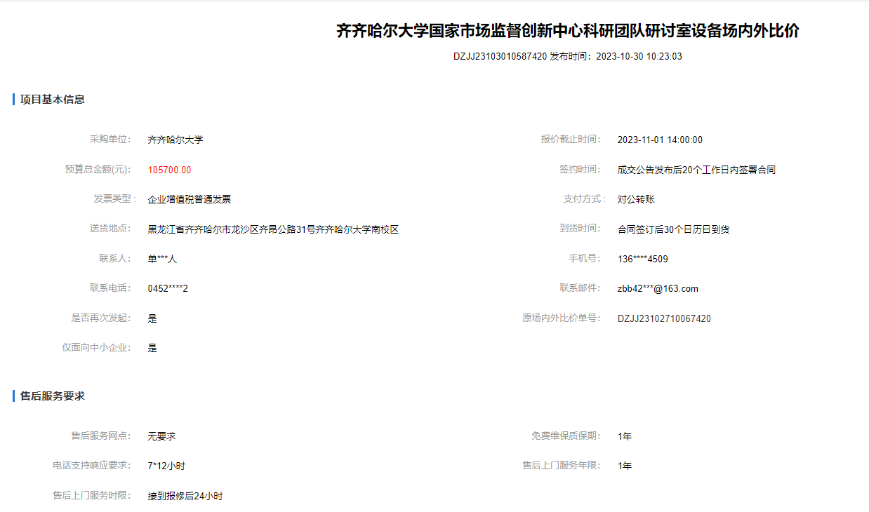 上一條:齊齊哈爾大學(xué)50L真空乳化罐場內(nèi)外比價(轉(zhuǎn)自黑龍江省政府采購網(wǎng))