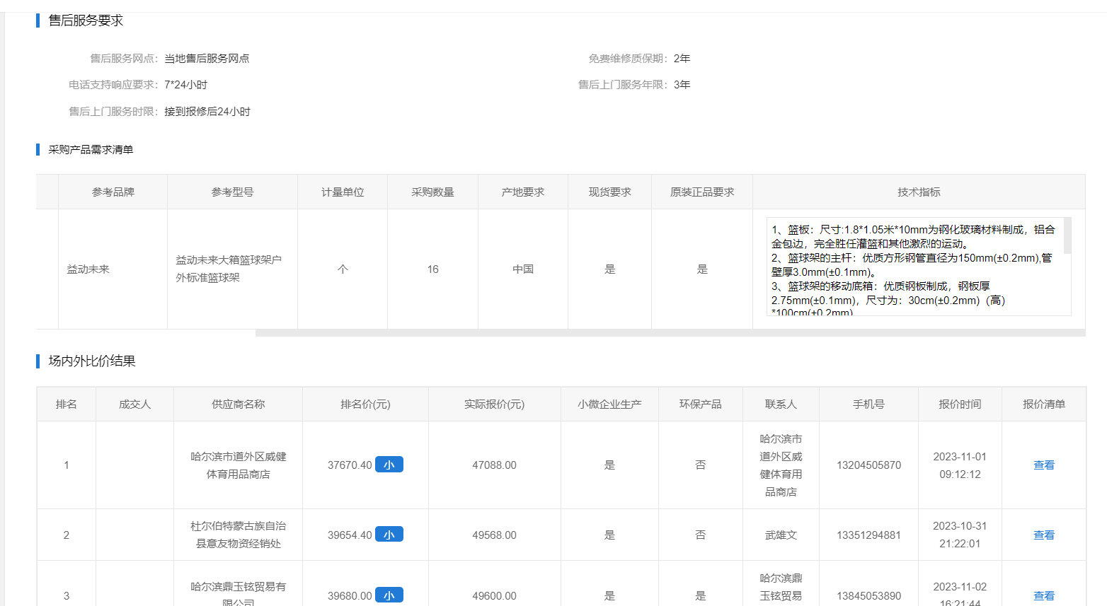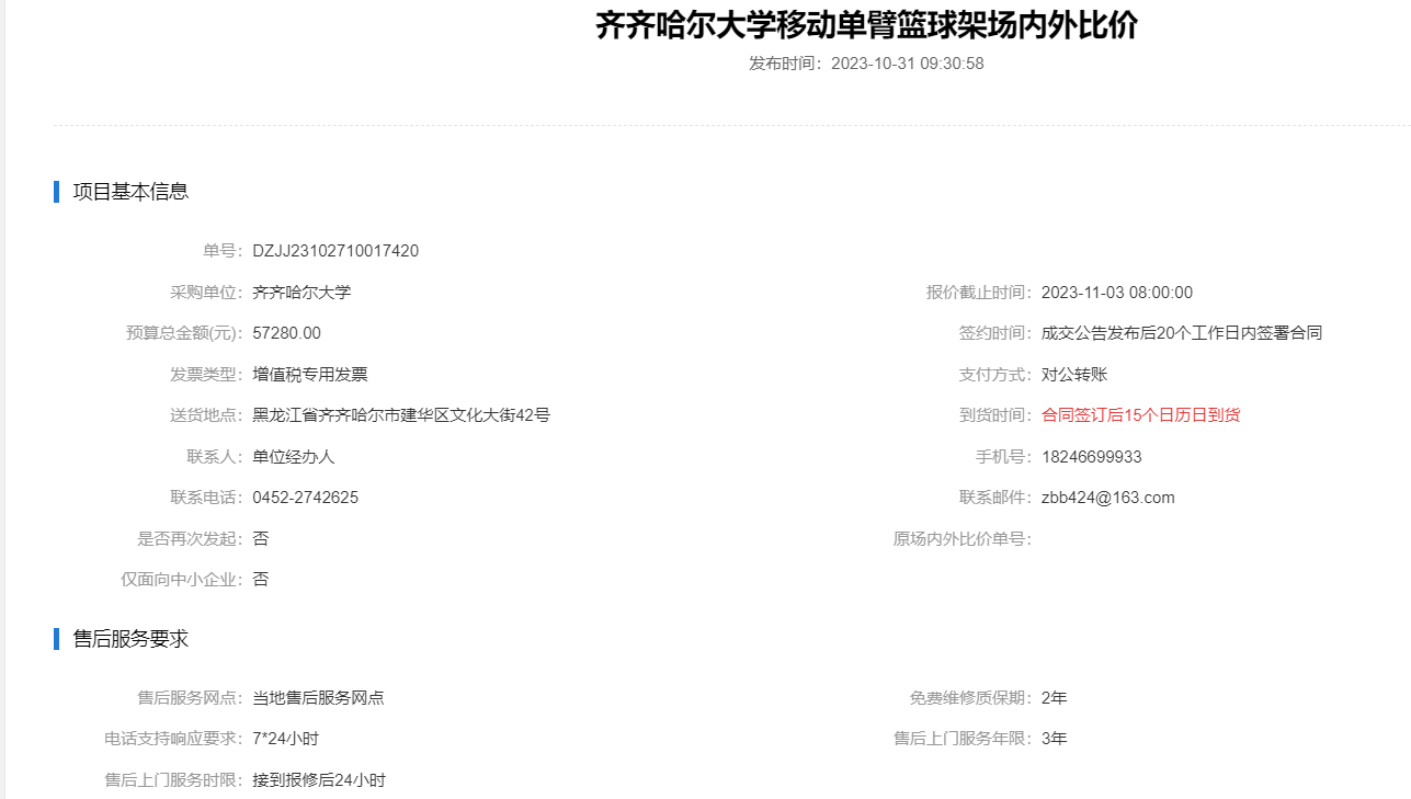 上一條:齊齊哈爾大學移動單臂籃球架場內外比價(二次)(轉自黑龍江省政府采購網(wǎng))