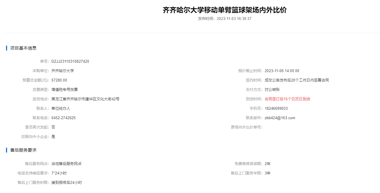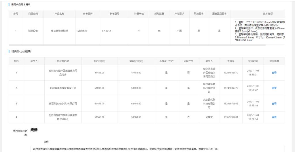 上一條:齊齊哈爾大學(xué)移動(dòng)單臂籃球架場(chǎng)內(nèi)外比價(jià)(三次)(轉(zhuǎn)自黑龍江省政府采購(gòu)網(wǎng))
