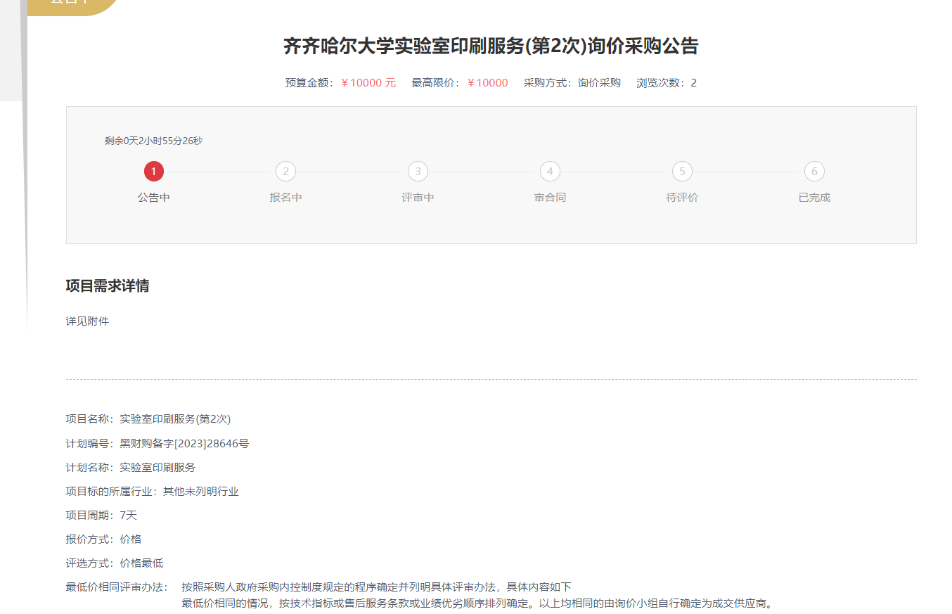 下一條:齊齊哈爾大學(xué)實驗室印刷服務(wù)詢價采購公告(轉(zhuǎn)自黑龍江省政府采購網(wǎng))
