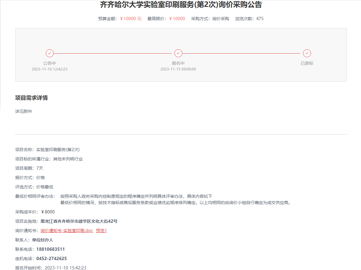 上一條:齊齊哈爾大學(xué)實(shí)驗(yàn)室印刷服務(wù)(第3次)詢價(jià)采購(gòu)公告(轉(zhuǎn)自黑龍江省政府采購(gòu)網(wǎng))