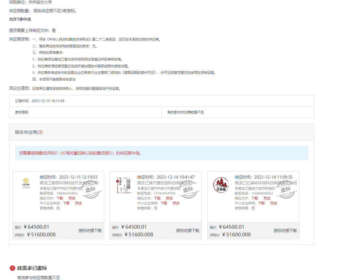 下一條:齊齊哈爾大學(xué)實(shí)驗(yàn)室危險(xiǎn)廢物處置項(xiàng)目成交公告(轉(zhuǎn)自中國(guó)政府采購(gòu)網(wǎng))