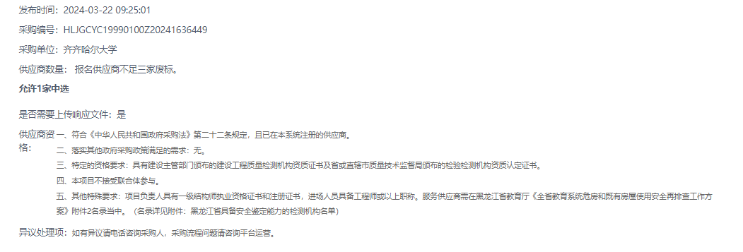下一條:齊齊哈爾大學2024年碩士專業(yè)學位論文評閱服務競爭性談判公告(轉自黑龍江省政府采購網(wǎng))