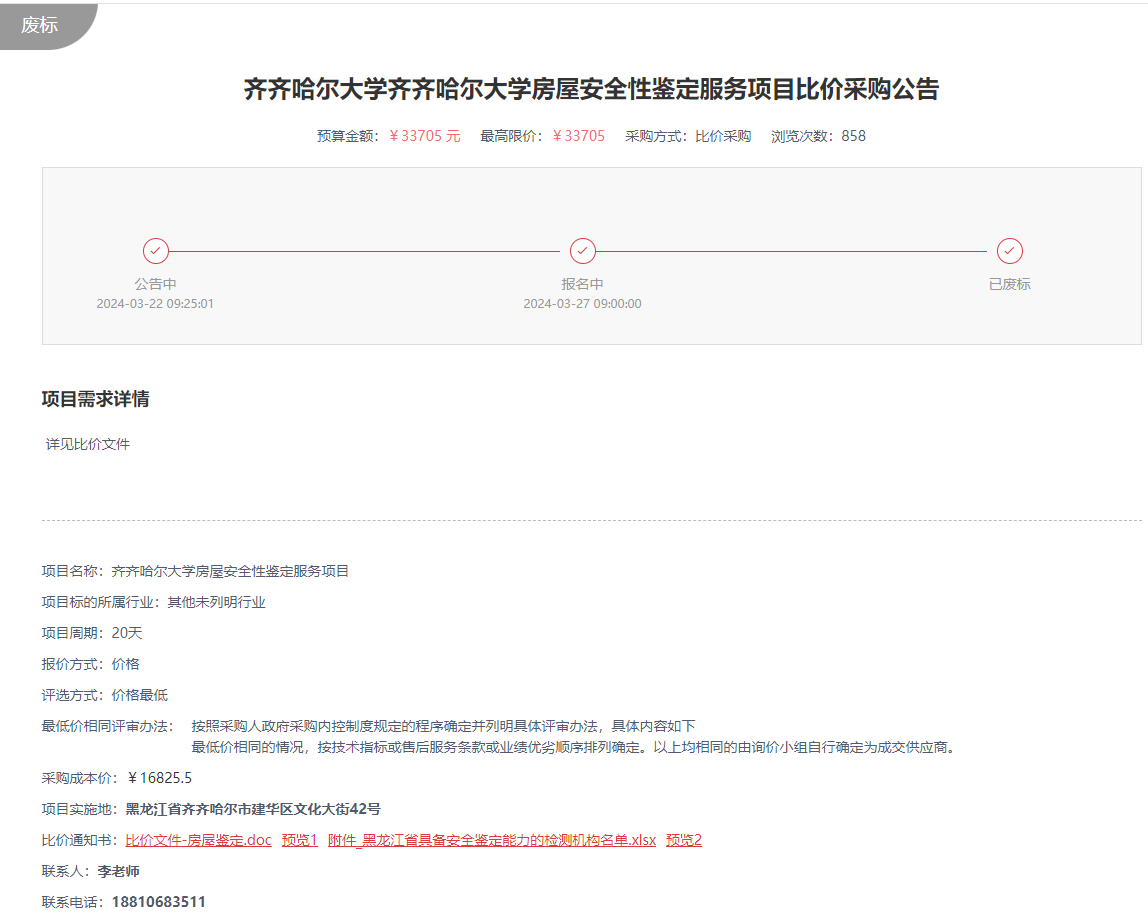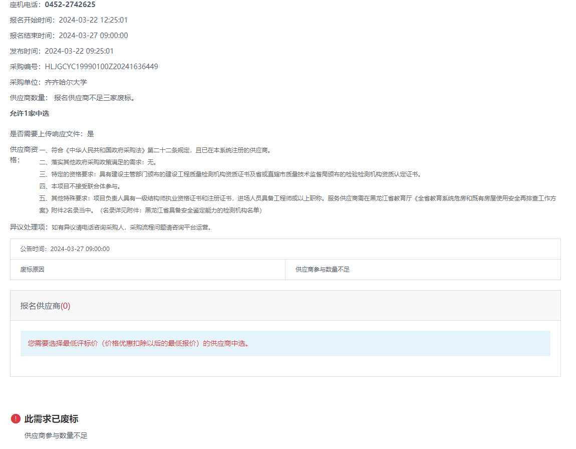 上一條:齊齊哈爾大學(xué)房屋安全性鑒定服務(wù)項(xiàng)目(第2次)比價(jià)采購(gòu)公告(轉(zhuǎn)自黑龍江省政府采購(gòu)網(wǎng))