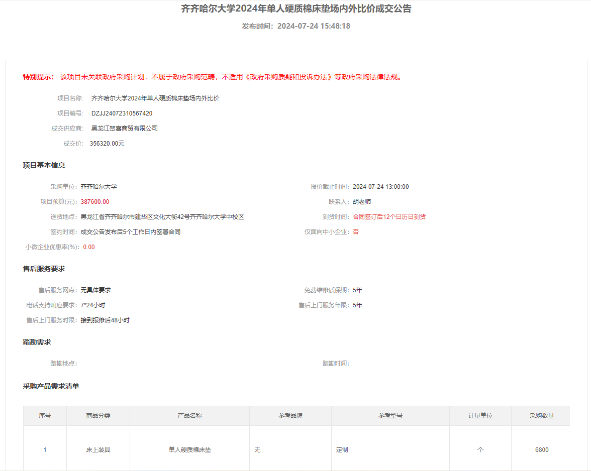 上一條:齊齊哈爾大學(xué)2024年床上用品(內(nèi)芯類)采購(gòu)項(xiàng)目成交公告(轉(zhuǎn)自中國(guó)政府采購(gòu)網(wǎng))