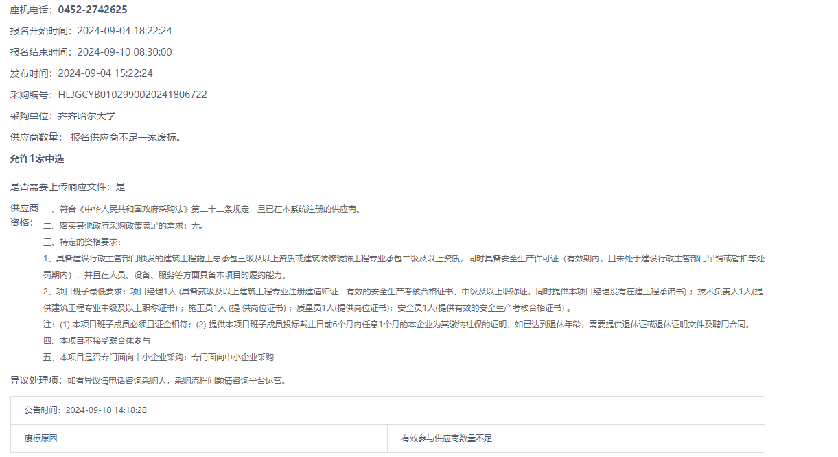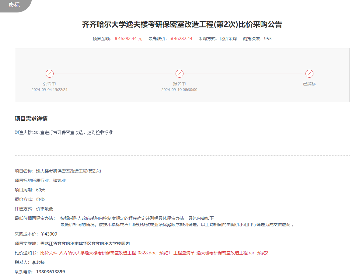 上一條:齊齊哈爾大學(xué)逸夫樓考研保密室改造工程(第3次)比價采購公告(轉(zhuǎn)自黑龍江省政府采購網(wǎng))