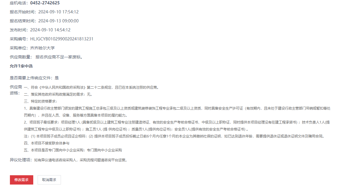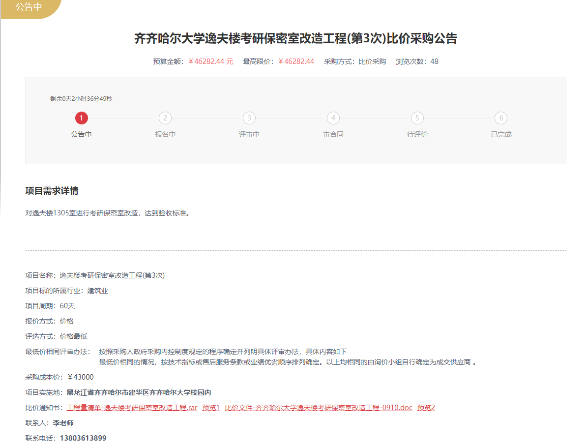 下一條:齊齊哈爾大學(xué)逸夫樓考研保密室改造工程(第2次)比價采購公告(轉(zhuǎn)自黑龍江省政府采購網(wǎng))